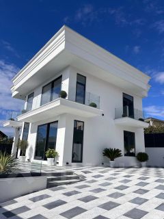 Внутреннее пространство дома отличается высокими потолками, просторными комнатами; Установлены алюминиевые панорамные раздвижные окна; Из просторных спален со второго этажа и с больших прочных балконов открывается потрясающий вид на Черное Море и на всю западную часть города - можно наблюдать закаты и рассветы, а так же наблюдать вылеты и посадки самолетов - их не слышно, НО видно!