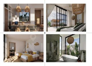 Приватность и комфорт: Каждая вилла это 135 кв.м. пространства с тремя мастер-спальнями, высокими потолками (4-5 м), зоной патио и отдыхом под перголой.