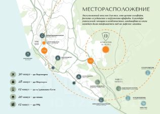 Развитая инфраструктура:СПА-комплекс, ресторан, детская игровая комната, коворкинг, мини-маркет, вертолетная площадка, арт-объект, винный дом Chateau Pinot, улиточная ферма и лесопарковая прогулочная зона.