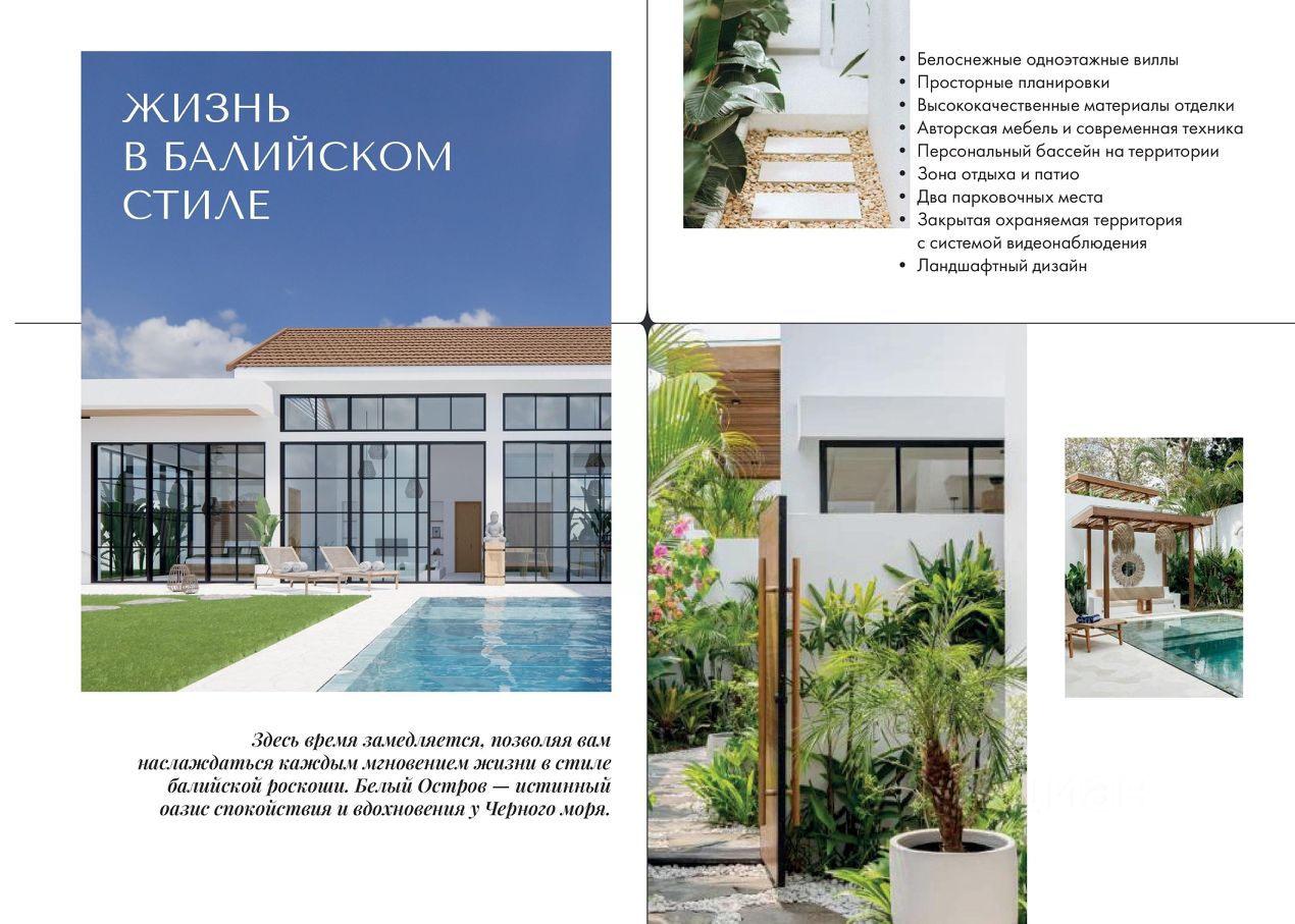Предлагаем вашему вниманию эксклюзивные виллы в коттеджном поселке "Белый остров", расположенном всего в 15 минутах от Сочи. Первая очередь успешно продана, и мы рады предложить вам приобрести виллу во второй очереди, готовность через 24 месяца.