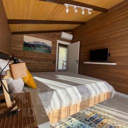 — 2 спальни на втором этаже, каждая с SMART TV и выходом на балкон с видом на горы
