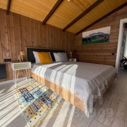 Уютный дом в горах с панорамным видом, выполненный в стиле шале из натуральных материалов — дерева, камня и стекла. Дизайнерский интерьер, продуманный до мелочей, создаёт атмосферу уюта и спокойствия.