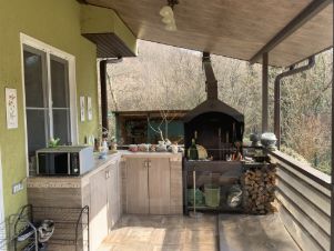 Терраса1 на фундаменте дома с кухней,гор.и хол. водой, мангалом и зоной отдыха.