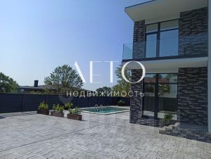 Дом построен с использованием качественных материалов, включая монолитный каркас и блоки, а фасад украшает дорогой клинкерный кирпич. Большие витражные алюминиевые окна наполняют внутренние пространства светом, а ограждение балконов из стекла добавляет современного шарма. Общая площадь участка составляет 5,5 соток, на котором уже создано красивое озеленение и газон, а также предусмотрено место под баню.