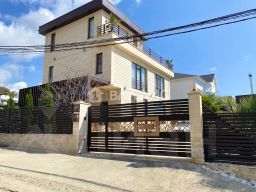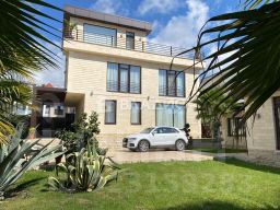 Продам шикарный дом с видом на море и Олимпийский парк. Площадь 279 м2, три этажа - на первом огромная кухня-гостиная, гостевой с/у, на втором этаже три спальни, с/у, на третьем - спальня, с/у, большая открытая терраса. В доме газ! Баня (Ферингер) с комнатой отдыха, где находится вся кухонная техника - посудомоечная машина, варочная панель, духовой шкаф, холодильник, сплит-система,ТВ и интернет. Также есть мангальная зона с казаном, зоной отдыха. Внутри этой зоны освещение, уличные розетки. Все здания на территории красиво подсвечиваются вечером снаружи. Есть видеонаблюдение, парковочные места. На участке пальмы, оливковое дерево, привезённое из Италии, лимоны, апельсины, мандарины, слива, яблоня, инжир.