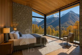 Расположен на живописном участке 19 соток с панорамным видом на горы и лес.