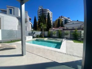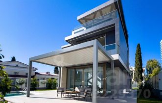 Продается вилла в камерном коттеджном поселке Millennium Villas. Великолепная локация, в трех минутах от центральной набережной, парком им. Фрунзе, Летним театром и Дендрарием. Фасады облицованы премиальным широкоформатным керамогранитом, дополнены панорамным остеклением и изысканной шпонированной входной группой. В доме установлен скоростной лифт премиум-класса от турецкого бренда IDA Lift. На участке выполнено ландшафтное озеленение: магнолия, пальмы Вашингтонии, кипарисы, олеандры и камелия. Великолепный бассейн, оборудован водопадом, подогревом, противотоком и подсветкой. Просторная Патио зона. В доме выполнена отделка white box. Все коммуникации центральные, на дом выделено 15 кВт. Дизайн-проект в подарок! По теплому контуру 300м2 +60 м2 террасы (эксплуатируемая кровля). Первый этаж: просторный холл с гардеробной зоной, кабинет или гостевая спальня, кухня-столовая и гостиная со вторым светом. Второй этаж распланирован на две мастер спальни, на третьем этаже самая большая мастер-спальня с выходом на просторную террасу, на которой можно расположить шезлонги, джакузи.