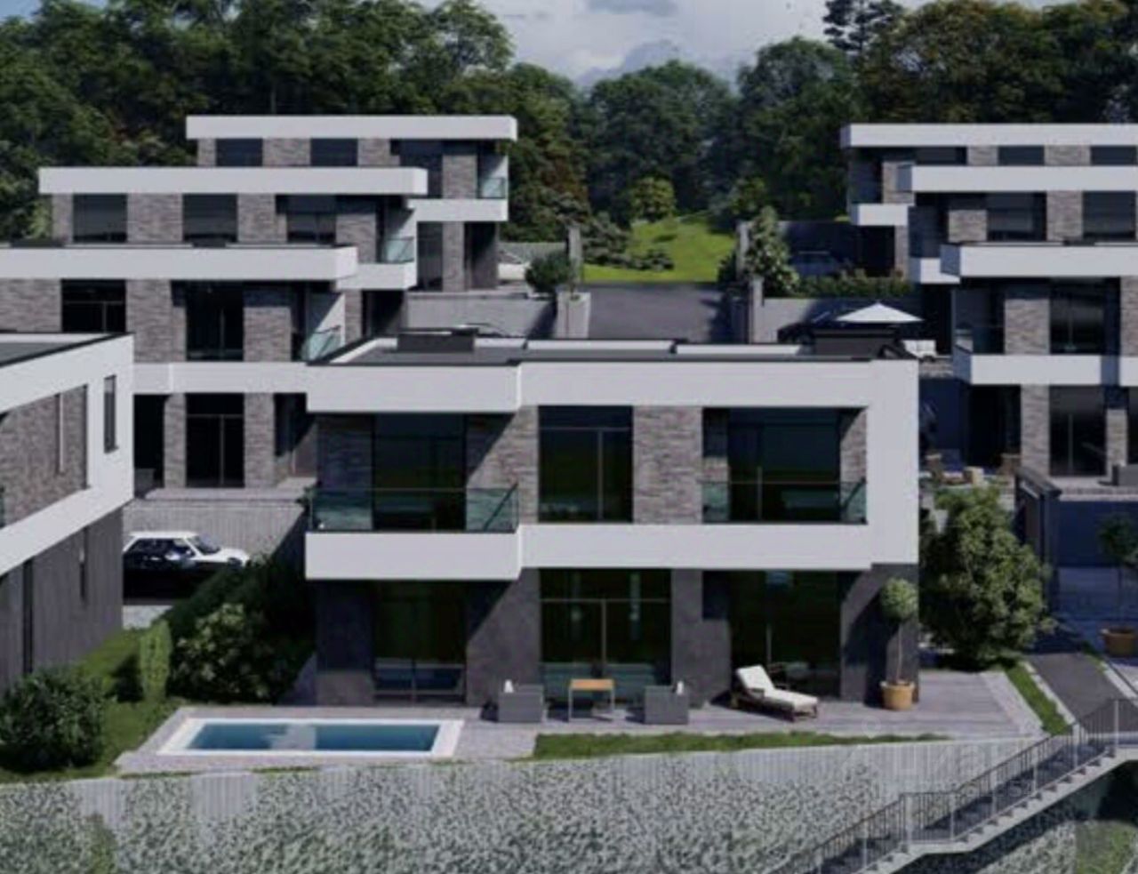 включают в себя обустроенную территорию, бассейн и паркинг. На