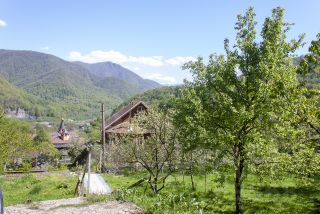 С участка открывается панорамный вид на долину реки Шахе и горный хребет Фишт, фотографии не передают всей красоты.