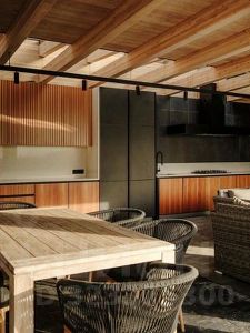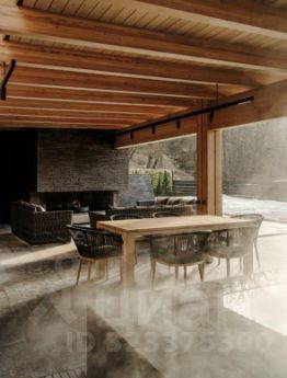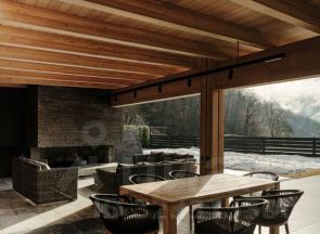 — Терраса с камином — идеальное место для душевных вечеров и приёма гостей.
