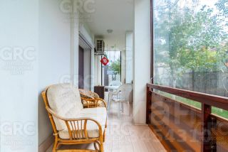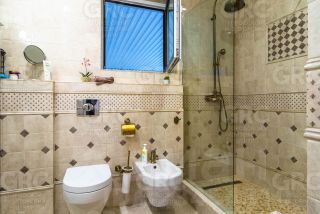 Вся мебель итальянского производства. Просторный санузел с ванной оснащен немецкой сантехникой.