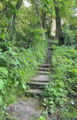 Подъезда к дому пока нет, пользуемся лестницей (50 метров), но можно провести полноценный подъезд.