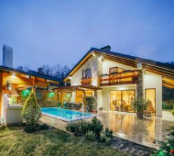 Три просторные спальни с каминами и панорамными окнами подарят незабываемые моменты отдыха. Просторная гостиная с высокими потолками и натуральными материалами создает ощущение единения с природой, а открытая терраса станет идеальным местом для вечерних чаепитий под симфонию горного ветра.
