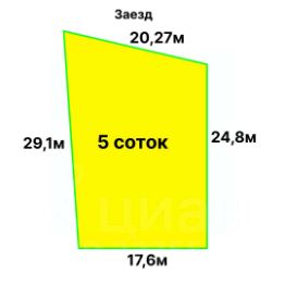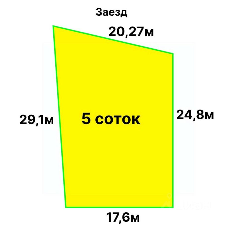 Участок идеально ровный 5 соток: фасад 20,27 и 17,6 м, глубина 24,8 и 29,1 м.