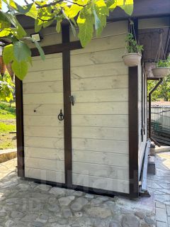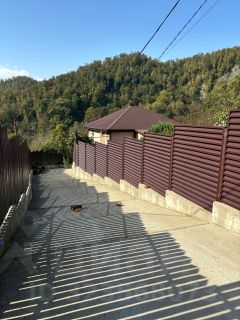 На участке растут плодовые деревья и кустарники: инжир, фейхоа, хурма, кизил, яблони, виноград. Посажены пальмы. Свет 15 кВт, чистая деревенская вода, газ по границе с участком. Своя бетонированная (армированная) дорога с заездом с центральной улицы. На фундаменте установлена хорошая хоз. постройка. Выполнен архитектурный и конструктивный проекты жилого дома, гаража и других подсобных построек, получено разрешение на строительство. Вообщем вложена душа в участок. Продажа в связи с переездом в другой город к детям.