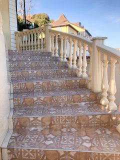 Потрясающий вид на город, ничего не перекрывает. Брусчаткой выложен двор.