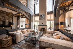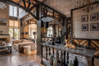 Интерьер резиденции выполнен в классическом стиле с элементами альпийского шале. Натуральные материалы, такие как дерево и камень, создают теплую и уютную атмосферу. Высокие потолки и панорамные окна обеспечивают обилие света и прекрасные виды на окружающую природу.