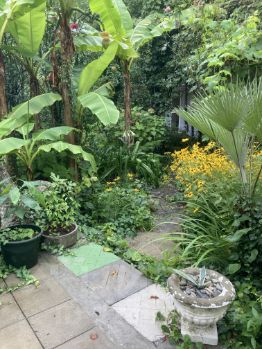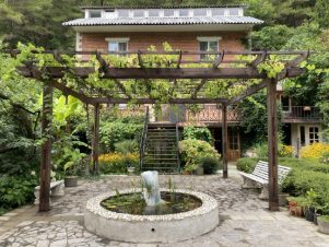 По факту больше. Сад с ландшафтным дизайном, множество растений: плодовых деревьев(инжир, шелковица, черешня, мушмула, яблони, груши, винограды, фейхоа, небольшие цитрусовые, киви и др) и декоративных(разные пальмы, розы, гортензии, камелия, олеандры, нарциссы, лесные цветы и многие др).