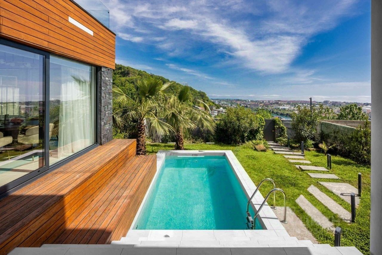 Инфраструктура виллы впечатляет: бассейн с подогревом и противотоком для освежающего плавания в любое время года, закрытый гараж и парковка для ваших автомобилей, видеонаблюдение для полного спокойствия. Панорамное остекление наполнит комнаты светом и откроет виды на море и горы, а террасы на каждом этаже станут местом для утренних медитаций и вечерних встреч.