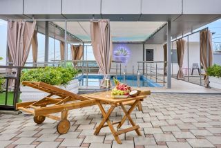 В доме есть все для безупречного отдыха: современная кухня, кровать размера кинг-сайз, бильярдный стол, плазменные телевизоры, Wi-Fi, кондиционеры, бассейн, баня, парковка, мангал и даже услуги трансфера. Камеры безопасности обеспечат ваше спокойствие.