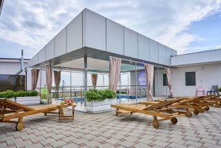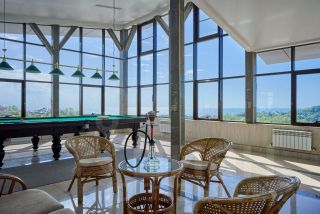 Третий этаж поразит воображение: 156 квадратных метров с витражным остеклением и панорамным видом на горы и море. Здесь вы найдете бильярдный стол для азартных игр, детскую игровую зону для маленьких непосед, уютную зону отдыха для всей семьи, беговую дорожку для поддержания формы и даже детский бассейн для веселья.