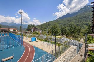 В шаговой доступности вся инфраструктура поселка: кафе, магазины, аптеки. Рядом со домом расположен благоустроенный сквер с детскими и спортивными площадками. Всего девять минут на такси — и вы у подъемников знаменитых курортов Роза Хутор, Газпром и Красная Поляна.