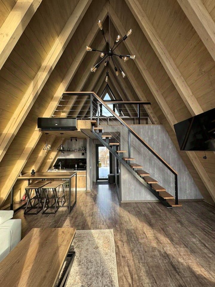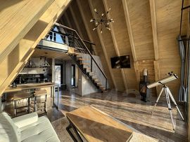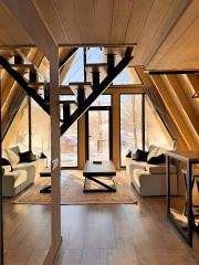 На первом этаже дома расположены просторная гостиная с камином, уютная кухня, оборудованная всей необходимой бытовой техникой, и гостевая спальня. Второй этаж включает в себя три спальни, каждая из которых имеет свои видовые характеристики. В каждой спальне есть своя ванная комната, что обеспечивает максимальный комфорт и приватность.