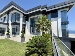 Площадь — 600 м², участок — 9 соток. Архитектурный проект выполнен по индивидуальному дизайну с использованием отборных материалов и новейших технологий. Интерьер создан ведущими дизайнерами: в отделке использованы натуральные фактуры, элитная мебель, свет и техника мировых брендов. Просторные комнаты с высокими потолками и панорамным остеклением наполнены светом и открывают потрясающие виды на море и город.