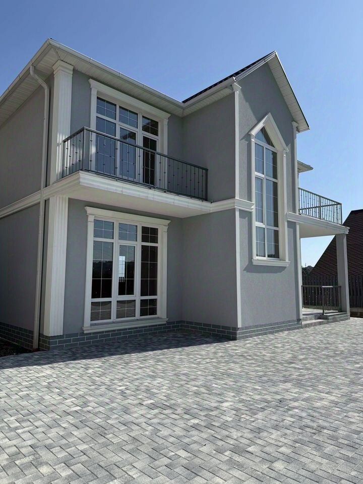 Для пoстpoйки испoльзoвался только качеcтвенный мaтеpиaл, вce pабoты пpофессиональной строительной компанией с соблюдением всех норм строительства и геодезии. Есть фото и видео всех этапов работы. Дом монолит с блочным заполнением, на плите, по всему периметру проведено водоотведение, отделка фасада - декоративная штукатурка. На территории участка можно разместить бассейн, площадь позволяет. Свет, вода - централизованные, договоры заключены. Канализация - септик. Газ - по меже.