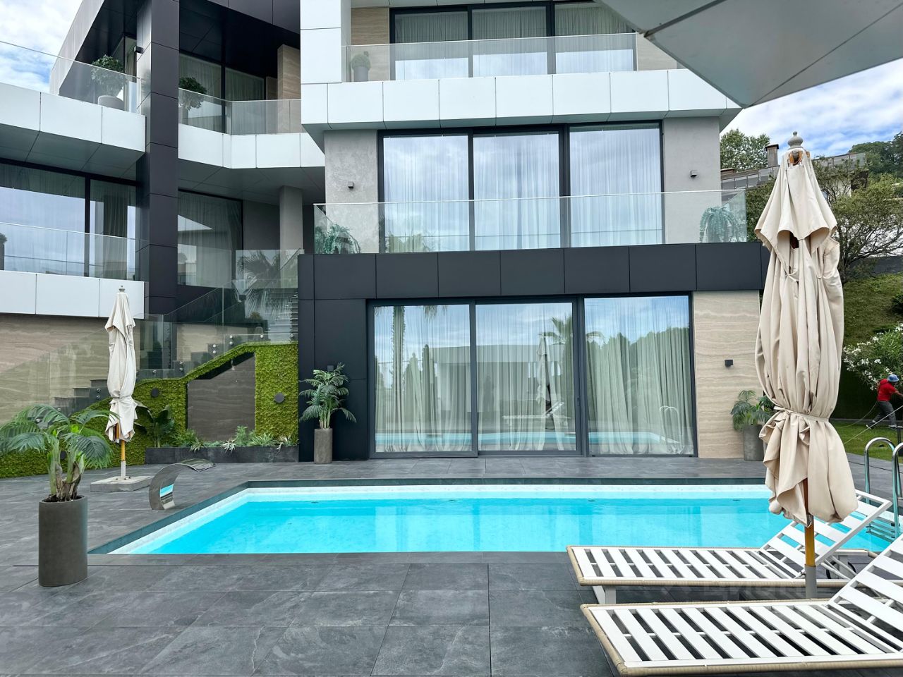 Архитектура потока: Просторные гостиные, перетекающие в зону бассейна, изолированные спальные апартаменты и лифт, связывающий этажи в единое целое.
