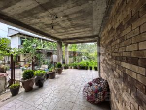 Дом располагается в шикарной локации, окружен зеленью, рядом протекает речка.