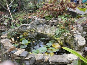 Место для отдыха, мангальчик. Небольшой прудик с карпами.