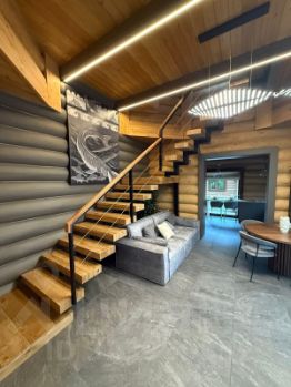 Банный комплекс, 100 кв.м, в нем есть жаркая парилка, 2 комфортные зоны отдыха на первом и втором этажах.