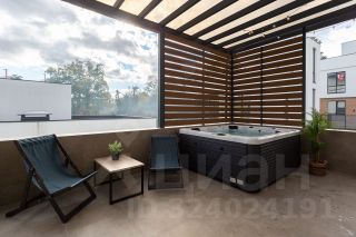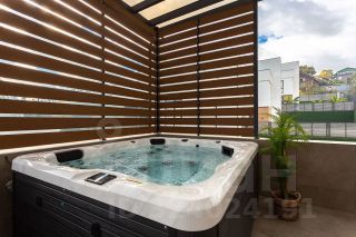 На ней установлена летняя кухня, ротанговая мебель и дорогой современный джакузи.