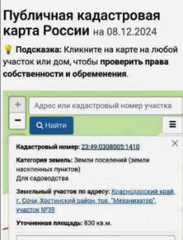 Просмотр участка самостоятельно по этим координатам 43.632276. 39.809100.