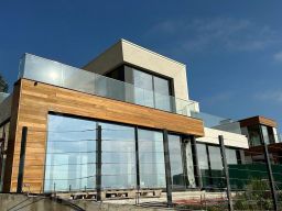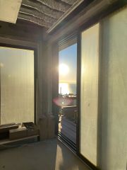 В каждой комнате панорамное остекление SСНUСО с видом на море(закат) и горы.