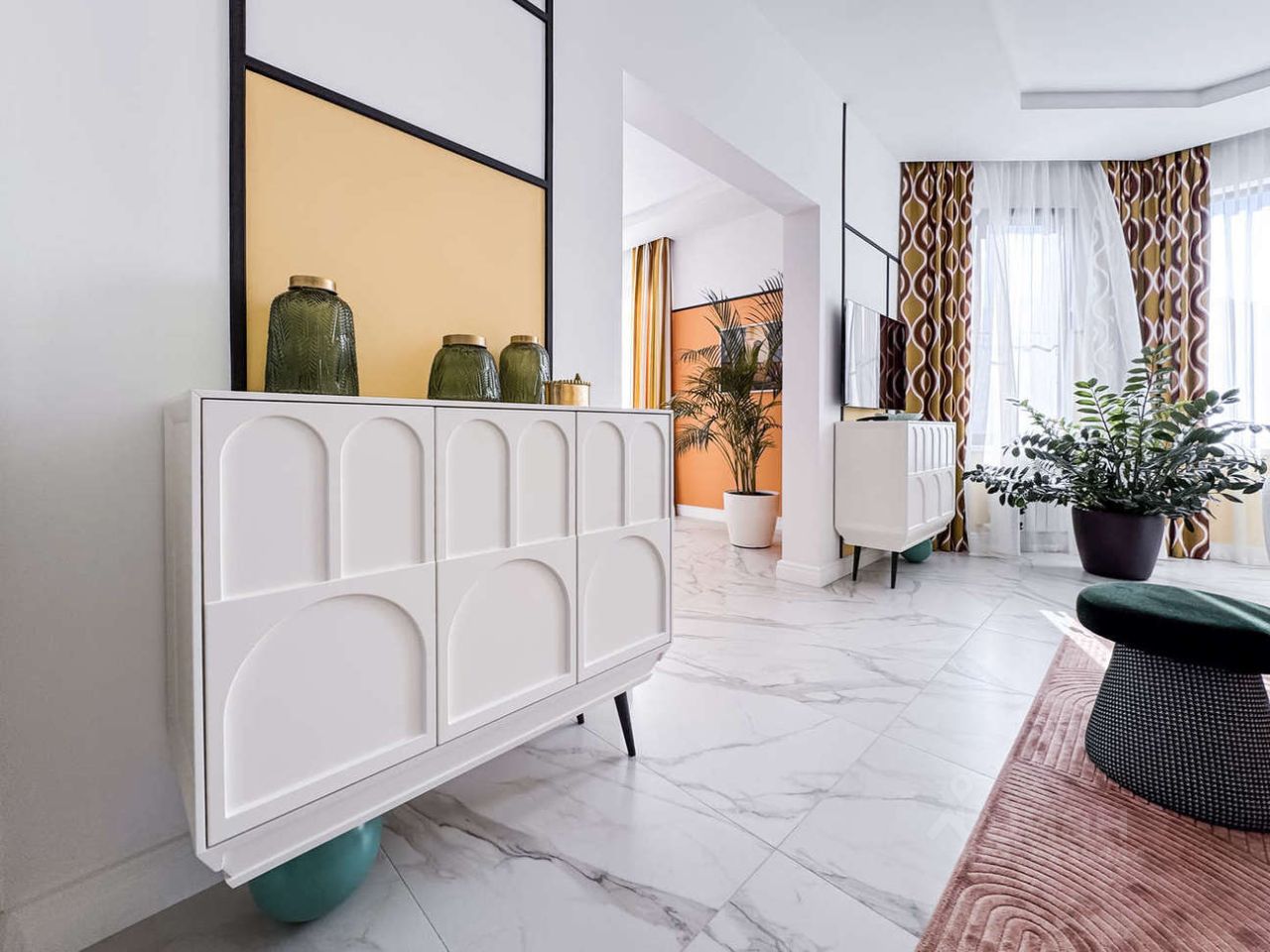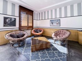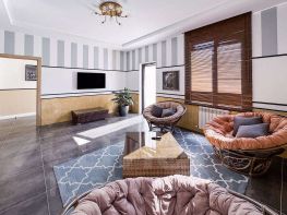 В доме выполнен стильный ремонт по эксплозивному дизайну знаменитого дизайн бюро. Стиль подходи смелым и оптимистичным)