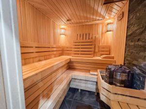 -1 этаж - полноценный этаж с отдельным входом, просторная зона отдыха, сауна, душевая, котельная, гостиная с профессиональной системой караоке, кухня-столовая с винотекой, встроенным винным холодильником, санузел с душевой, выход на террасу, где располагается мангальная зона и выход к бассейну.