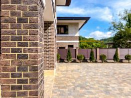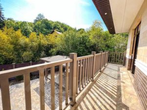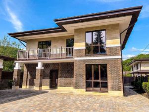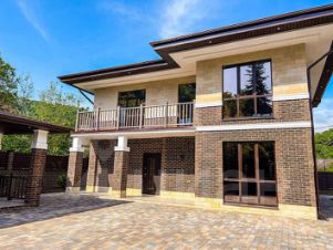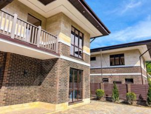 Отделка фасада комбинированная натуральный камень, клинкерный кирпич, декоративные элементы. Ограждение балконов натуральное дерево. большому количеству световых точек дома наполнены естественным светом.