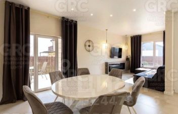 При входе вы попадаете в просторную гостиную с панорамными окнами, которые позволяют наслаждаться потрясающим видом на окружающую природу. Кухня оборудована всем необходимым для приготовления вкусных блюд, а просторная столовая идеально подходит для семейных посиделок и приема гостей.