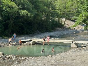 Широкая галечная пляжная полоса.