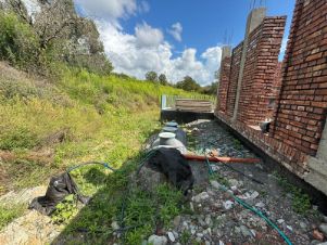 Хорошо подготовили участок. Поставили качественную опорную стену. Залит большой бассейн с видом на море и аэропорт. Сделали дорогу к участку. Теперь есть хороший заезд.