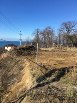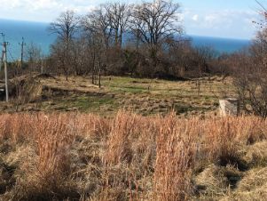 Абсолютно ровный участок, фасад 32,5 м, обнесенный забором (рабица), с хорошим подъездом, расположенный на террасе южного склона горы с видом на море и храмовую гору. Уединенное место, при этом до достопримечательности развалины Византийского храма - 600 м, до озера с рыбалкой - 500 м, до пляжа - 1,3 км, до центра поселка, где расположены ж/д и авто вокзалы, рынок, почта, банки и т.п. 2 км