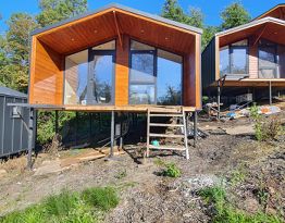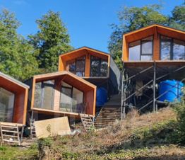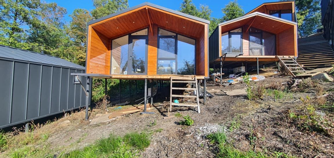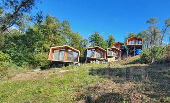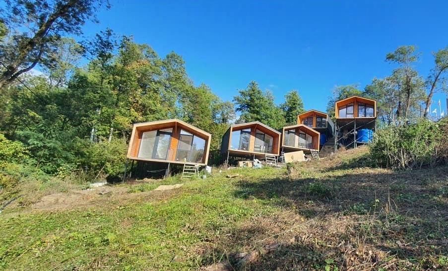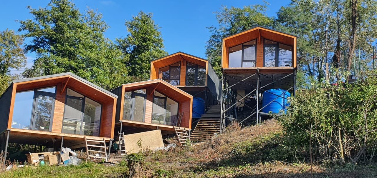 На территории уже действуют 5-ть комфортабельных модульных домов, вместимостью до 4-х человек, предназначенных для круглогодичного проживания. Гостевые дома полностью укомплектованы и подключены к коммуникациям.