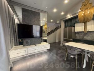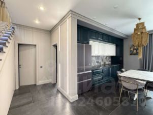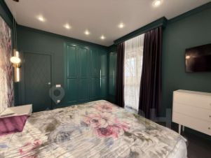 Кухнягостиная - сердце дома: встроенный гарнитур глубокого изумрудного оттенка, фартук из плитки "соты", столешница под мрамор, обеденная зона с мягкими стульями иакцентной люстрой. Встроенная техника и часть мебели могут остаться по договорённости. Аккуратные межкомнатные двери с фрезеровкой, ровные стены, идеальные потолки - всё выполнено в едином стиле и не требует вложений.