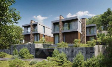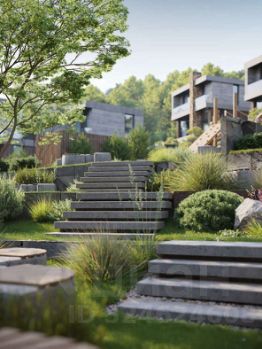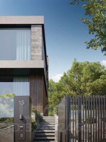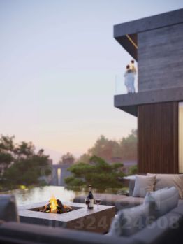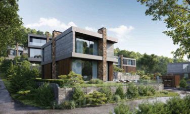 - Премиальные материалы отделки фасада (термоясень, испанский микроцемент, бежевый сланец-брекчия)