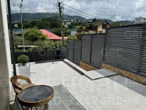 Участок 4 сотки террасирован, что позволить парковать машину на нижнем уровне и наслаждать свободным пространством на втором уровне. При необходимости так же на участке имеется место под бассейн.