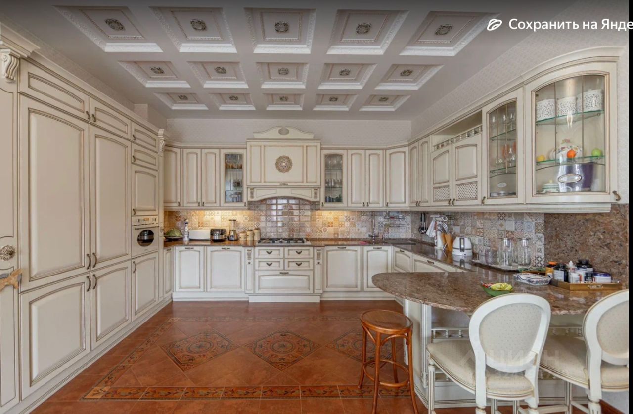 Внутренние помещения:5 спален,6 ванных комнат и душевых, 2- кухни, спортзал, сауна. В отделке интерьера использованы французские бумажные экообои с покрытием воском, венецианская штукатурка, нанесение шелкографии, потолки- ручная, художественная роспись. Паркет-красное дерево Мирбау( Индонезия), итальянская сантехника, в т.ч. Vileroy Bosh. Мебель выполнена из массива красного дерева производство Малайзия. Во всех помещениях установлены кондиционеры Mitsubishi Electric. Газовые плиты, электрооборудование Smeg (Италия), холодильное- Liebherr( Германия).