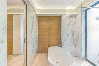 Санузлы также выполнены в соответствии с самыми высокими стандартами качества. В каждом из двух санузлов установлены душевые перегородки из Италии, а в мастер-спальне вы найдете отдельно стоящую ванну того же производителя. Сантехника представлена изделиями от Hansgrohe (Германия) и итальянских брендов. Унитазы от Laufen (Франция) - это самая современная технология подвесных унитазов.