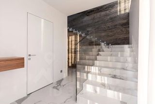 Фасад дома облицован японскими самоочищающимися панелями, что гарантирует его безупречный внешний вид на долгие годы и минимизирует затраты на обслуживание.